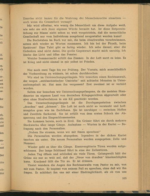 Unstet wandern die Augen des Rechtsanwalts vom Pastor zu mir, von mir zum Pastor. Er beginnt von seinem Fall-zu sprechen, ohne daß wir ihn fragen. Er schildert ihn uns mit einer Eindringlichkeit, als ob von uns