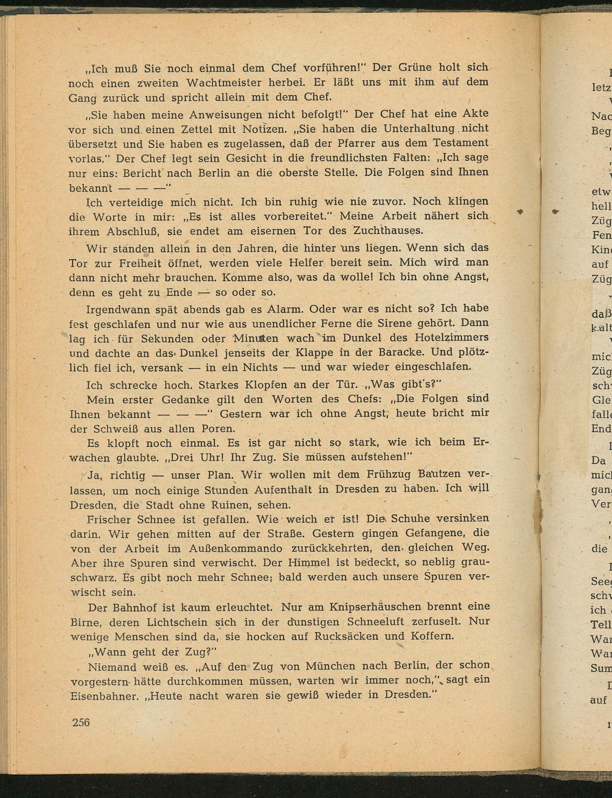 „Sie haben meine Anweisungen nicht befolgt!” Der Chef hat eine Akte vor sich und einen Zettel mit Notizen.„Sie haben die Unterhaltung.nicht übersetzt und Sie haben es zugelassen, daß der Pfarrer aus dem Testament vorlas.'' Der Chef legt sein Gesicht in die freundlichsten Falten:„Ich sage nur eins: Bericht’ nach Berlin an die oberste Stelle. Die Folgen sind Ihnen bekannt———\.