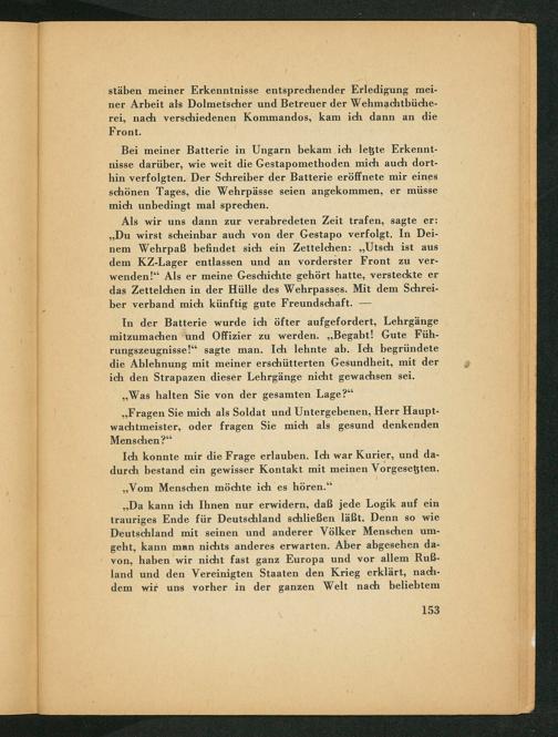 stäben meiner Erkenntnisse entsprechender Erledigung meiner Arbeit als Dolmetscher und Betreuer der Wehmachtbücherei, nach verschiedenen Kommandos, kam ich dann an die Front.