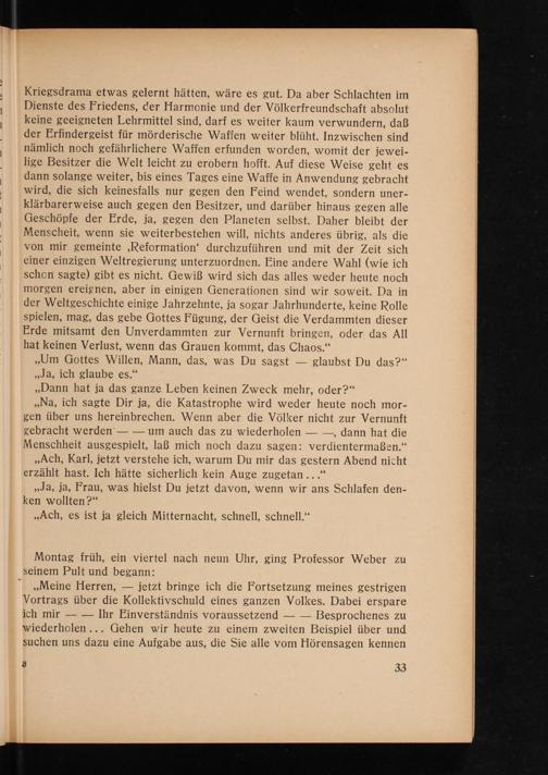 ,, Meine Herren, jetzt bringe ich die Fortsetzung meines gestrigen Vortrags über die Kollektivschuld eines ganzen Volkes. Dabei erspare ich mir Ihr Einverständnis voraussetzend- Besprochenes zu wiederholen... Gehen wir heute zu einem zweiten Beispiel über und suchen uns dazu eine Aufgabe aus, die Sie alle vom Hörensagen kennen