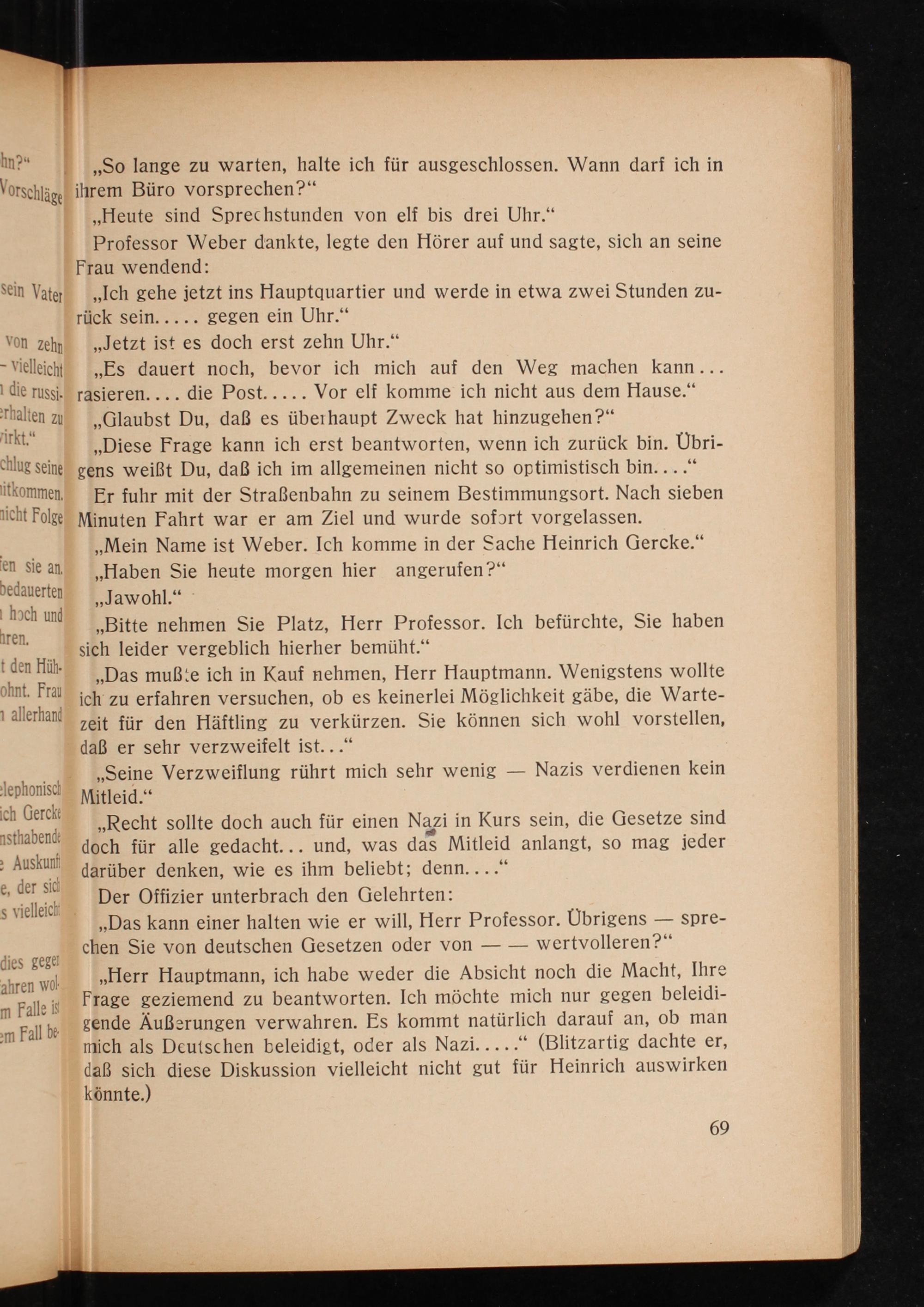 ,, Das kann einer halten wie er will, Herr Professor. Übrigens- sprechen Sie von deutschen Gesetzen oder von- wertvolleren?"