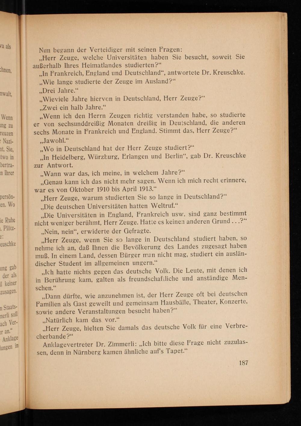 ,, In Frankreich, England und Deutschland ", antwortete Dr. Kreuschke. ,, Wie lange studierte der Zeuge im Ausland?"