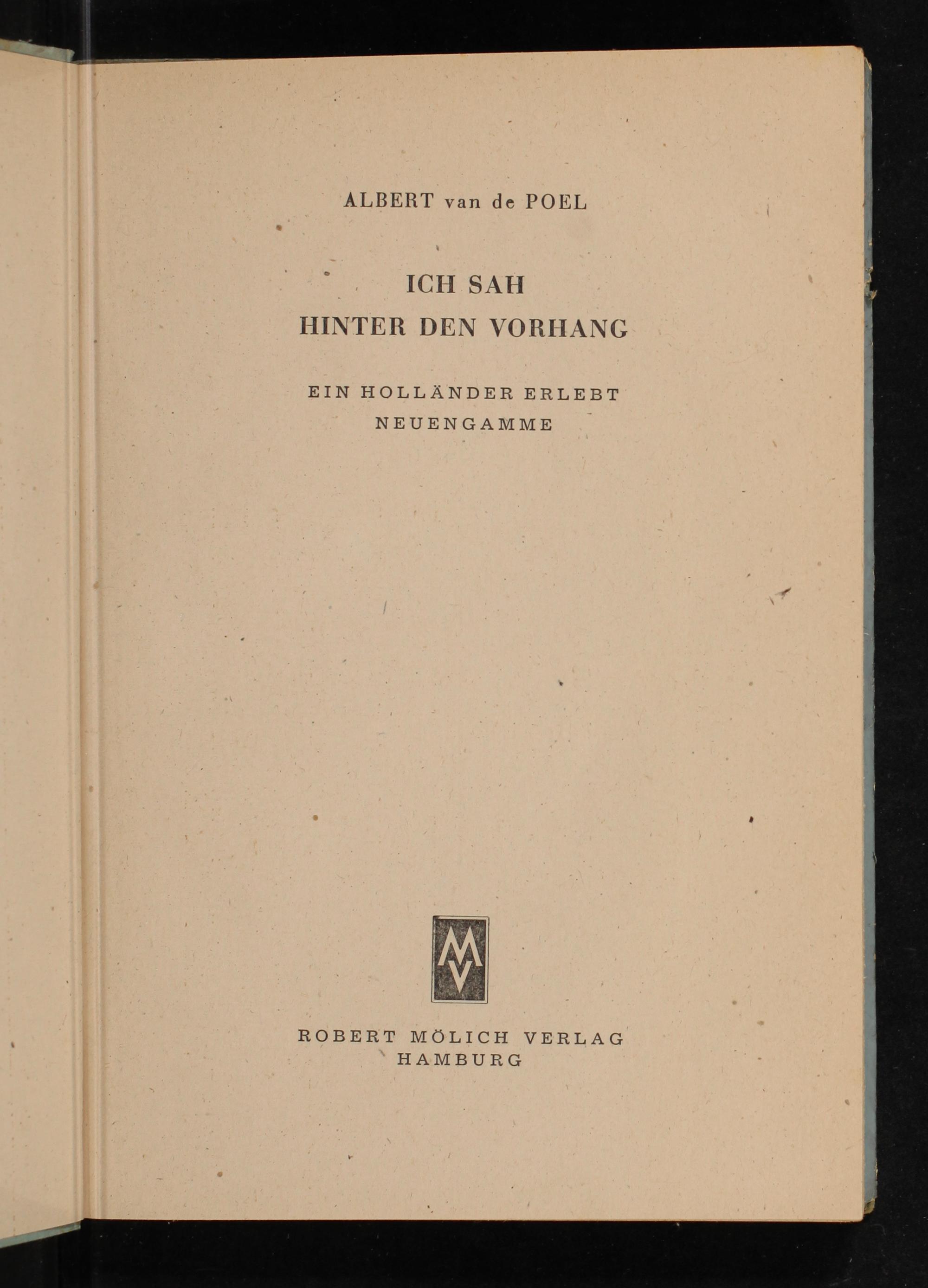 Ich sah hinter den Vorhang : ein Holländer erlebt Neuengamme / Albert van de Poel