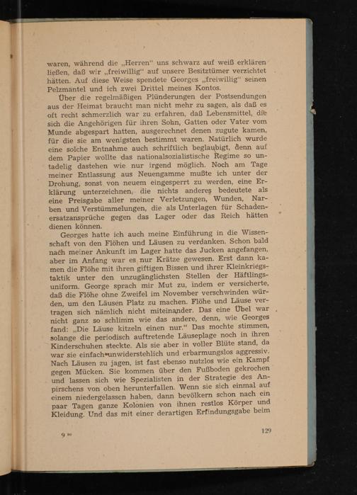 waren, während die ,, Herren" uns schwarz auf weiß erklären ließen, daß wir ,, freiwillig" auf unsere Besitztümer verzichtet hätten. Auf diese Weise spendete Georges ,, freiwillig" seinen Pelzmantel und ich zwei Drittel meines Kontos.