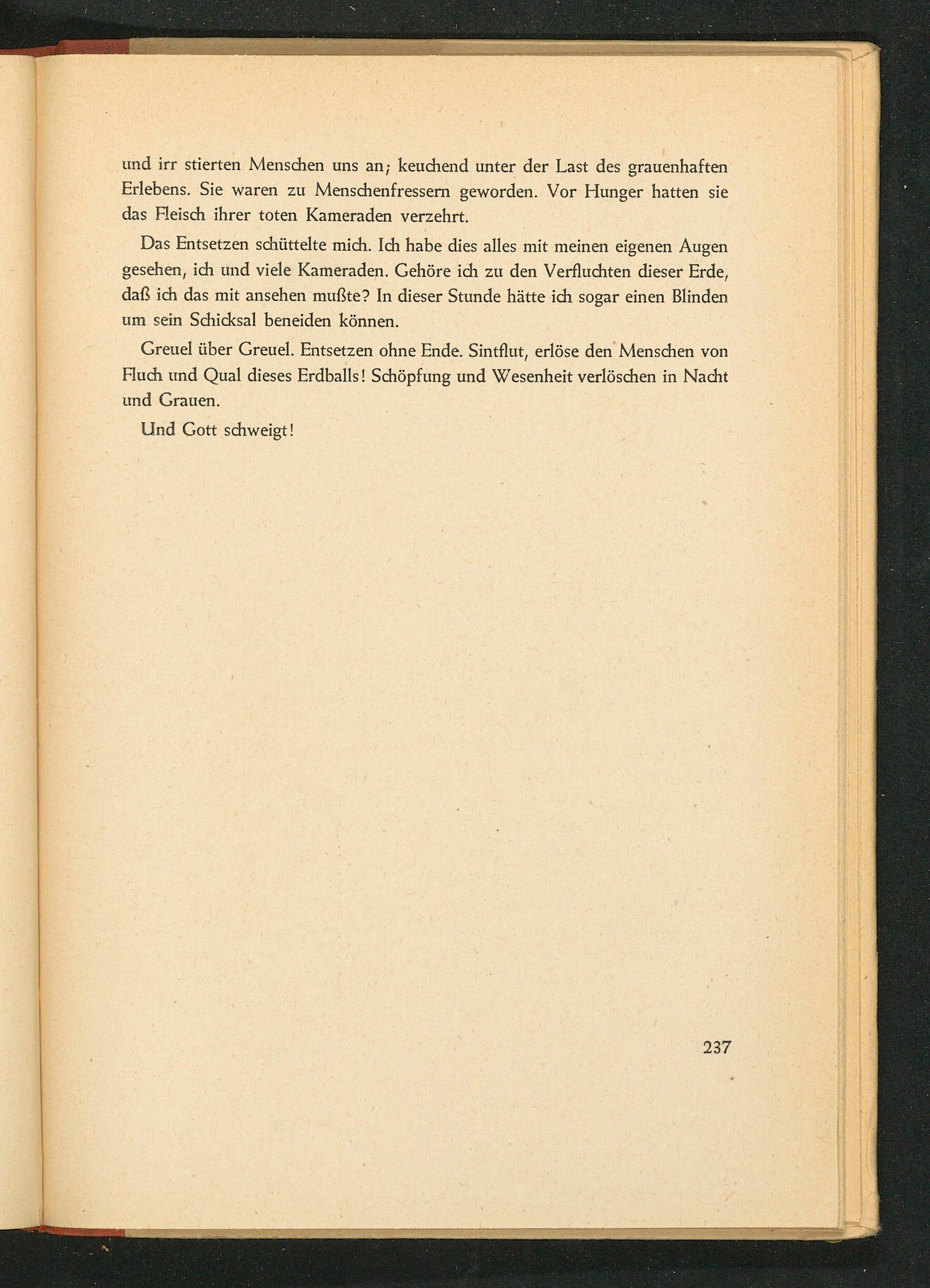 und irr stierten Menschen uns an; keuchend unter der Last des grauenhaften Erlebens. Sie waren zu Menschenfressern geworden. Vor Hunger hatten sie das Fleisch ihrer toten Kameraden verzehrt.