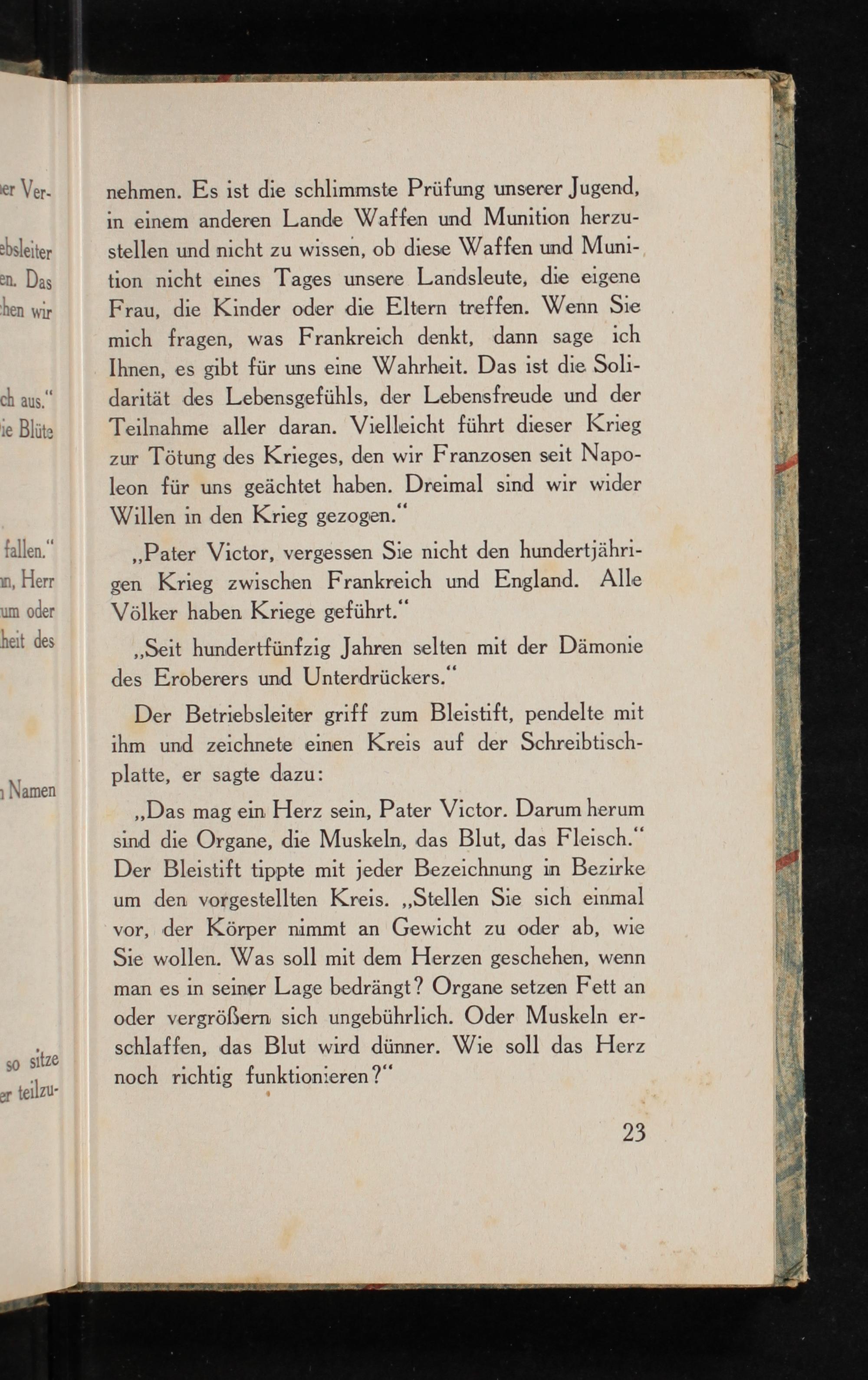 ,, Pater Victor, vergessen Sie nicht den hundertjährigen Krieg zwischen Frankreich und England. Alle Völker haben Kriege geführt."