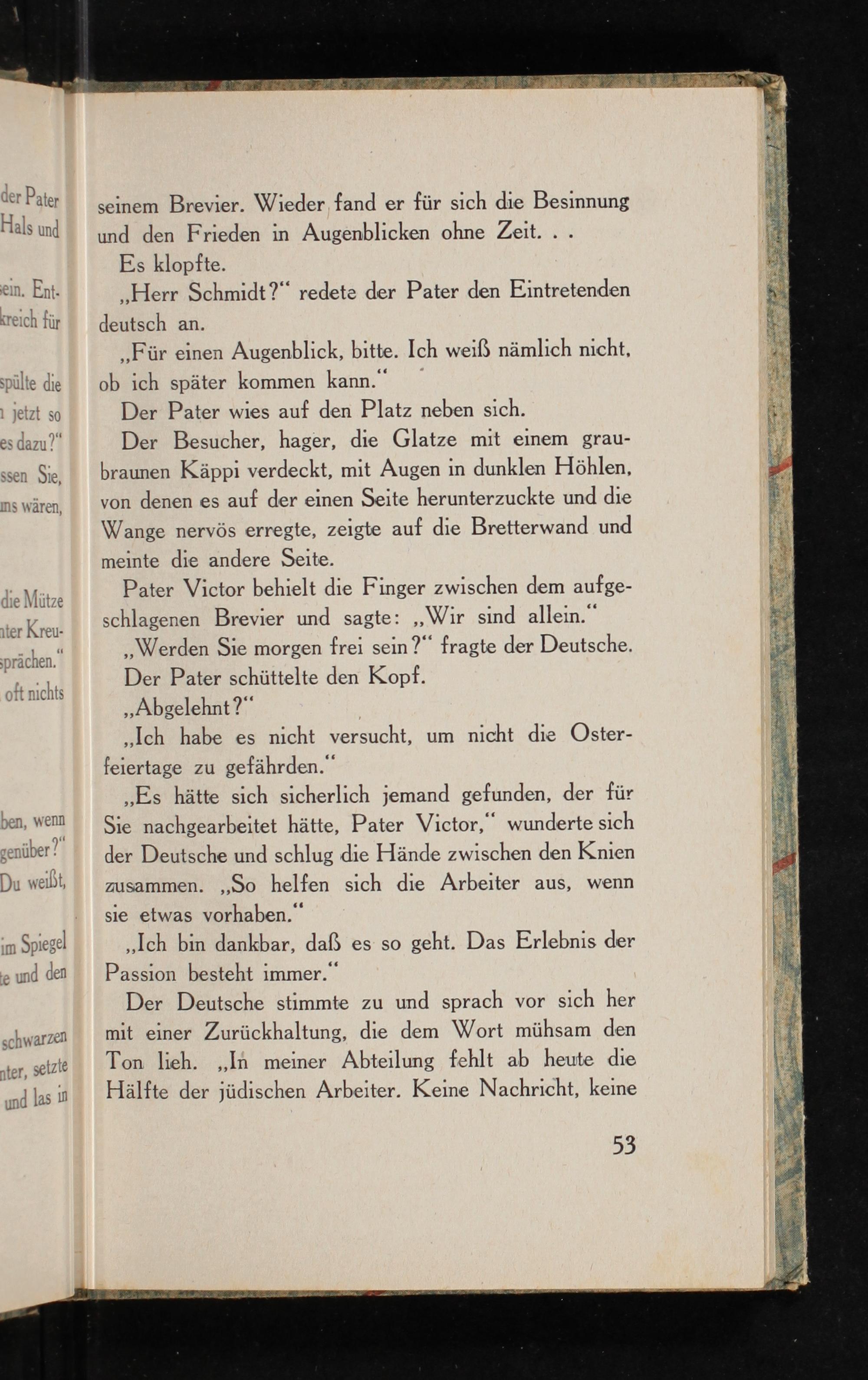 ,, Es hätte sich sicherlich jemand gefunden, der für Sie nachgearbeitet hätte, Pater Victor," wunderte sich der Deutsche und schlug die Hände zwischen den Knien zusammen. ,, So helfen sich die Arbeiter aus, wenn sie etwas vorhaben."