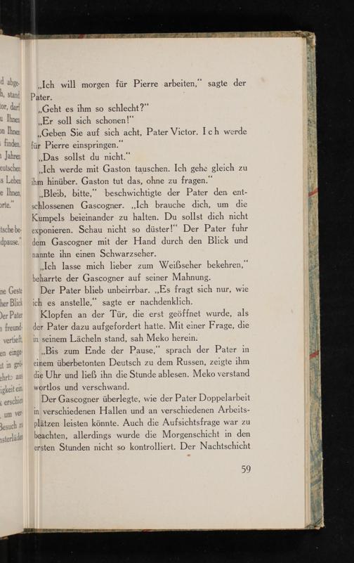 „Bis zum Ende der Pause,“ sprach der Pater in einem überbetonten Deutsch zu dem Russen, zeigte ıhm die Uhr und ließ ihn die Stunde ablesen. Meko verstand wortlos und verschwand.