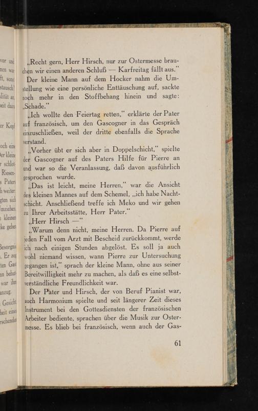 Der Pater und Hirsch, der von Beruf Pianist war, auch Harmonium spielte und seit längerer Zeit dieses Instrument bei den Gottesdiensten der französischen