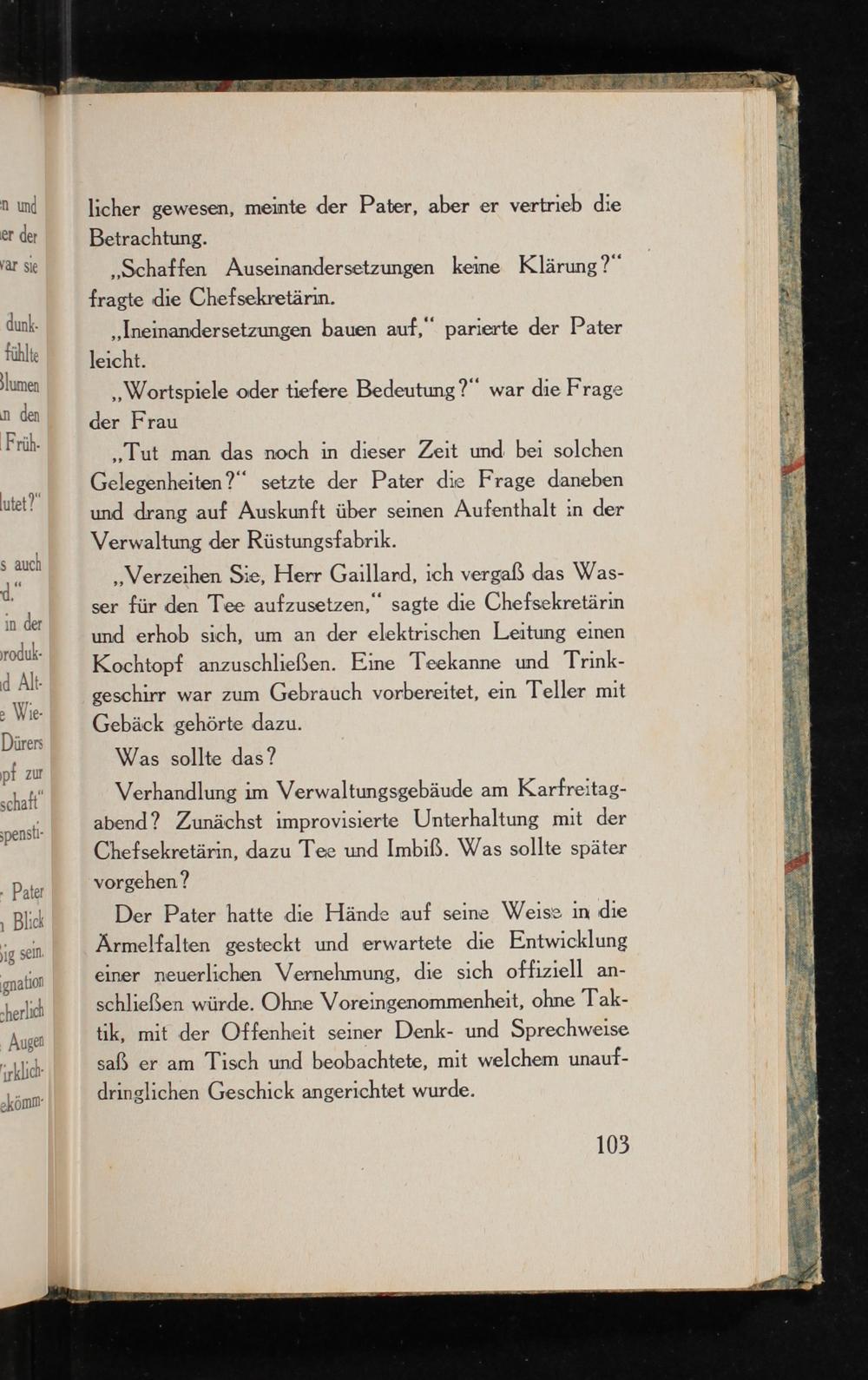 „Tut man das noch in dieser Zeit und bei solchen Gelegenheiten?“ setzte der Pater die Frage daneben und drang auf Auskunft über seinen Aufenthalt in der Verwaltung der Rüstungsfabrik.