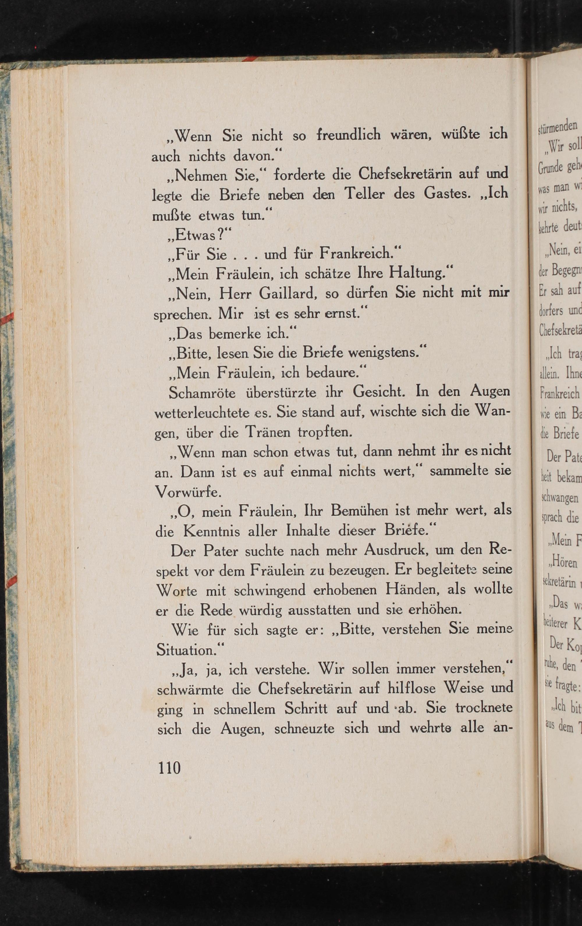 ,, Nehmen Sie," forderte die Chefsekretärin auf und legte die Briefe neben den Teller des Gastes. ,, Ich mußte etwas tun."