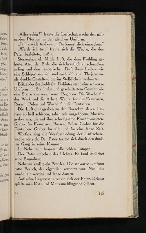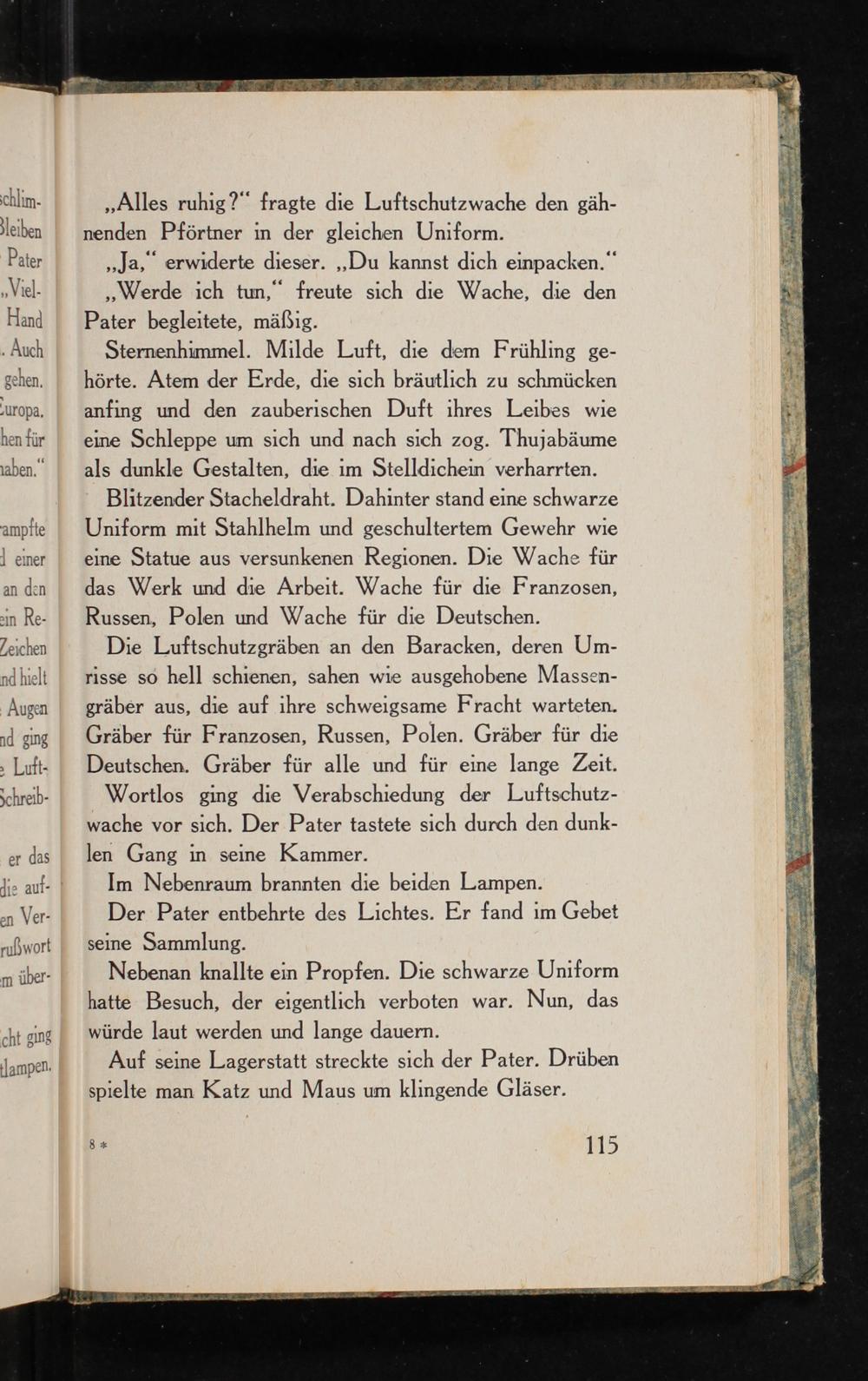 Wortlos ging die Verabschiedung der Luftschutzwache vor sich. Der Pater tastete sich durch den dunklen Gang in seine Kammer.