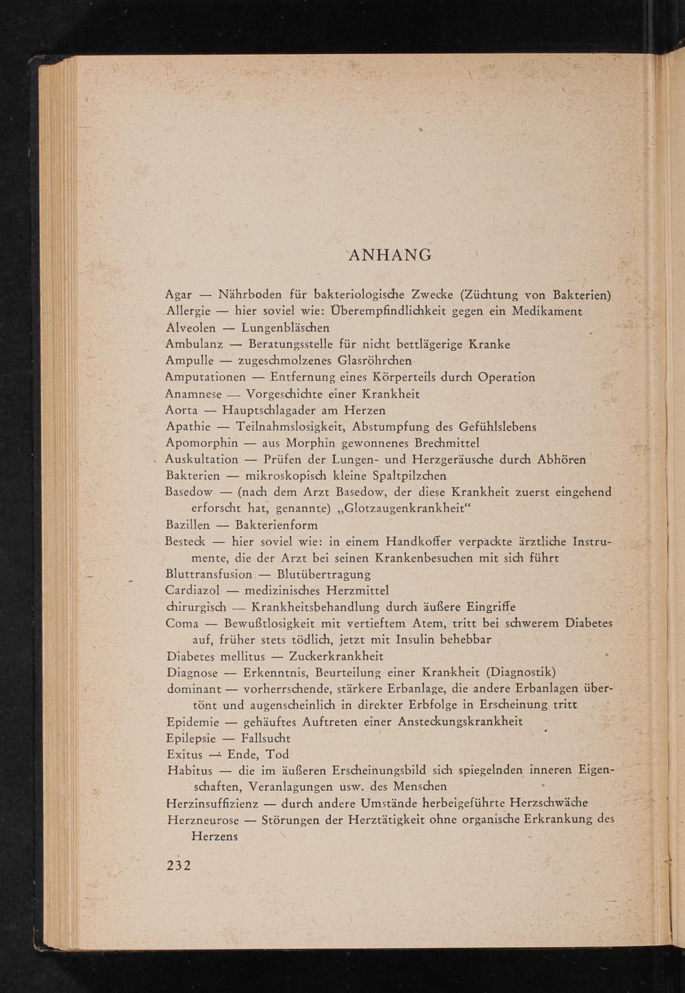 Apathie Teilnahmslosigkeit, Abstumpfung des Gefühlslebens Apomorphin aus Morphin gewonnenes Brechmittel Auskultation Bakterien