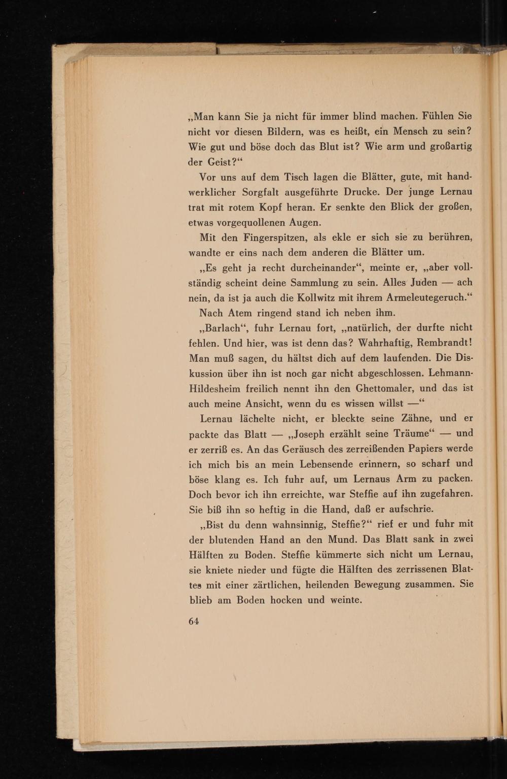 ,, Es geht ja recht durcheinander", meinte er ,,, aber vollständig scheint deine Sammlung zu sein. Alles Juden- ach nein, da ist ja auch die Kollwitz mit ihrem Armeleutegeruch." Nach Atem ringend stand ich neben ihm.