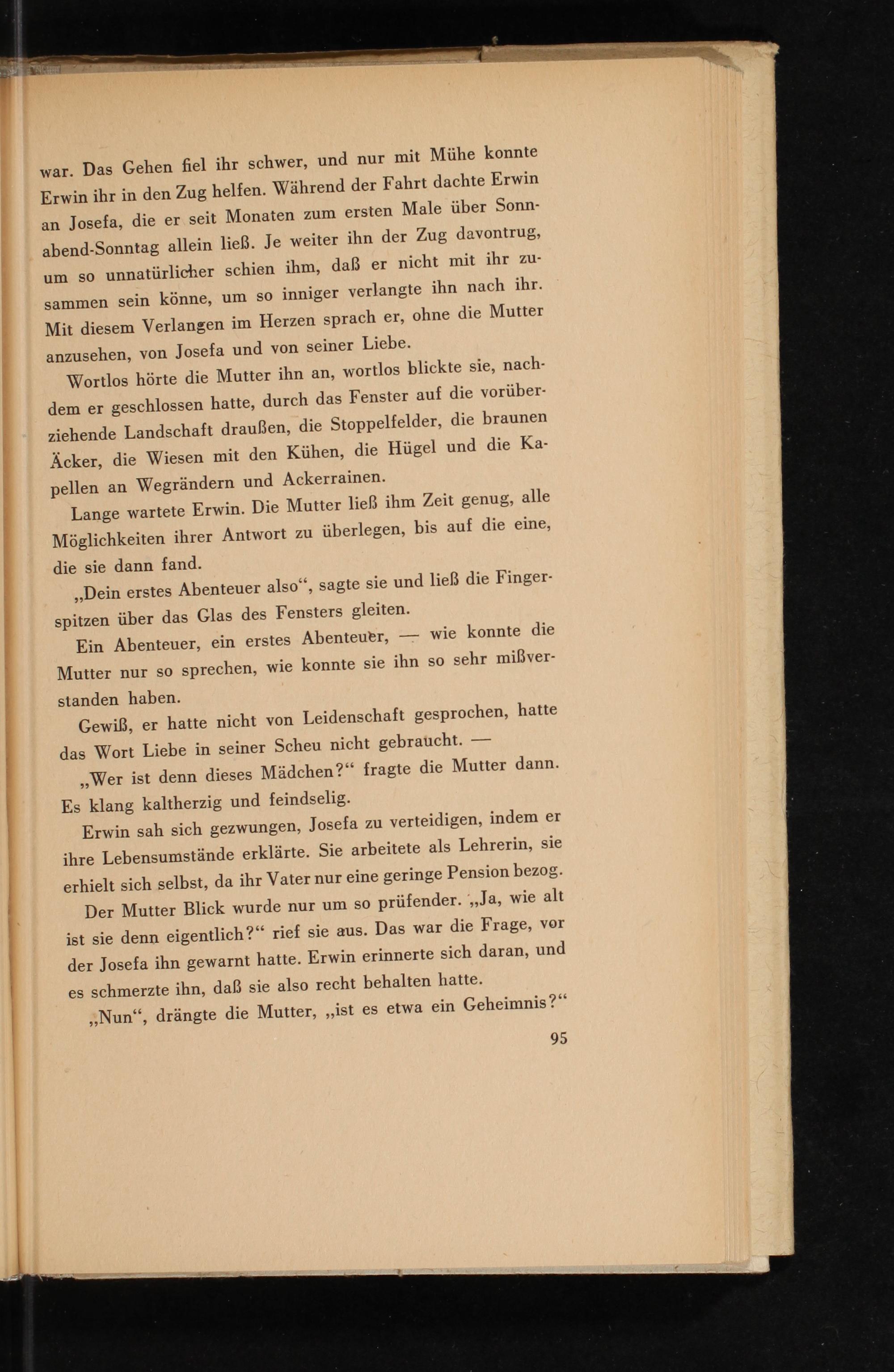 Der Mutter Blick wurde nur um so prüfender. ,, Ja, wie alt ist sie denn eigentlich?" rief sie aus. Das war die Frage, vor der Josefa ihn gewarnt hatte. Erwin erinnerte sich daran, und es schmerzte ihn, daß sie also recht behalten hatte.
