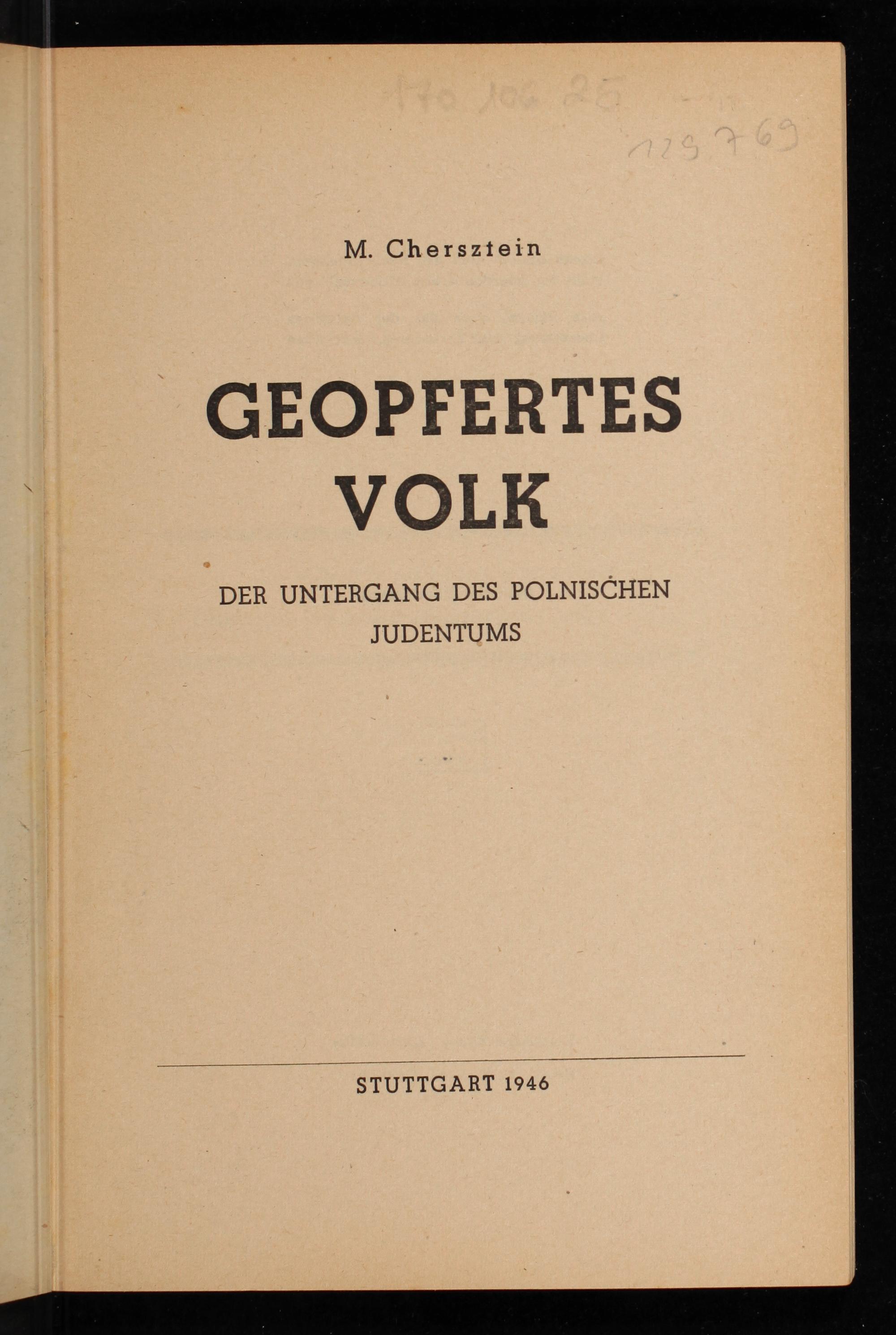 Geopfertes Volk : der Untergang des polnischen Judentums / M. Chersztein ; deutsche Übertragung von Jolanta Münch