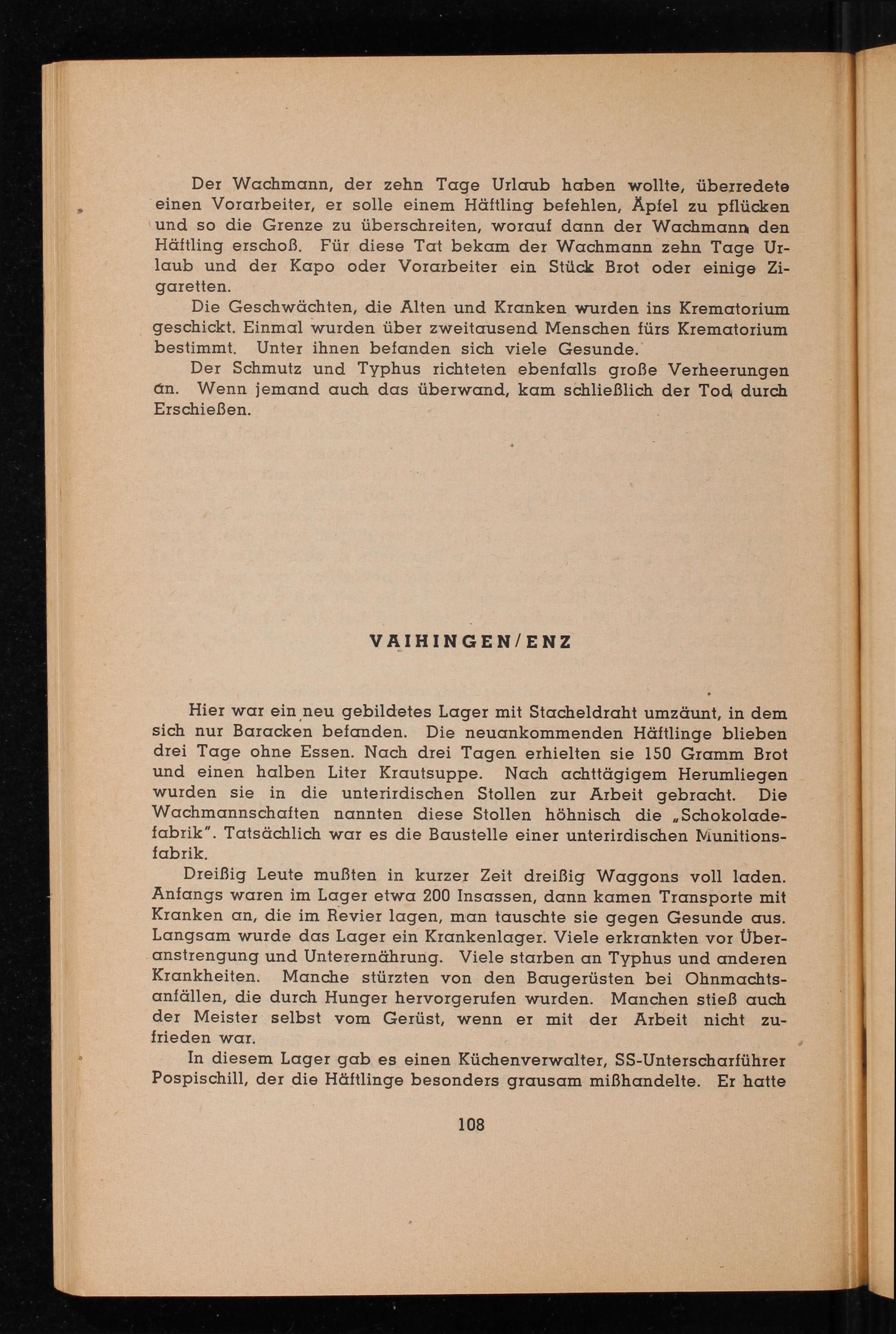 In diesem Lager gab es einen Küchenverwalter, SS- Unterscharführer Pospischill, der die Häftlinge besonders grausam mißhandelte. Er hatte