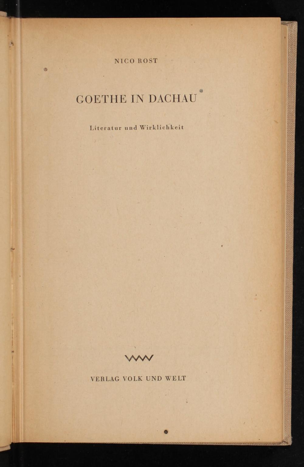 Goethe in Dachau : Literatur und Wirklichkeit / Nico Rost ; aus dem Holländischen übersetzt von Edith Rost-Blumberg