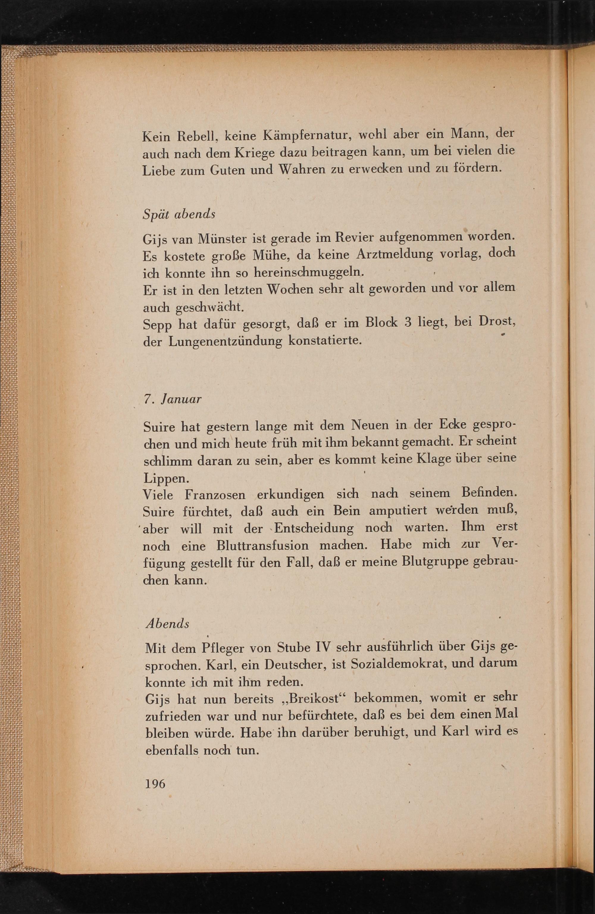 Mit dem Pfleger von Stube IV sehr ausführlich über Gijs gesprochen. Karl, ein Deutscher, ist Sozialdemokrat, und darum konnte ich mit ihm reden.