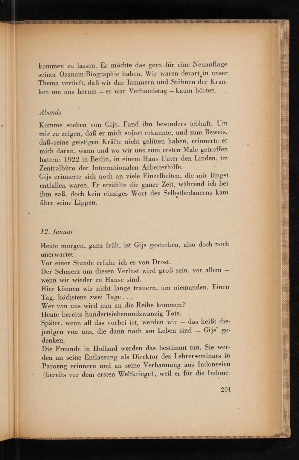 Komme soeben von Gijs. Fand ihn besonders lebhaft. Um mir zu zeigen, daß er mich sofort erkannte, und zum Beweis, daß seine geistigen Kräfte nicht gelitten haben, erinnerte er mich daran, wann und wo wir uns zum ersten Male getroffen hatten: 1922 in Berlin , in einem Haus Unter den Linden, im Zentralbüro der Internationalen Arbeiterhilfe.