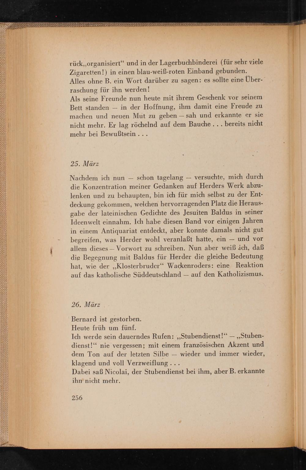 rück ,, organisiert" und in der Lagerbuchbinderei( für sehr viele Zigaretten!) in einen blau- weiß- roten Einband gebunden.