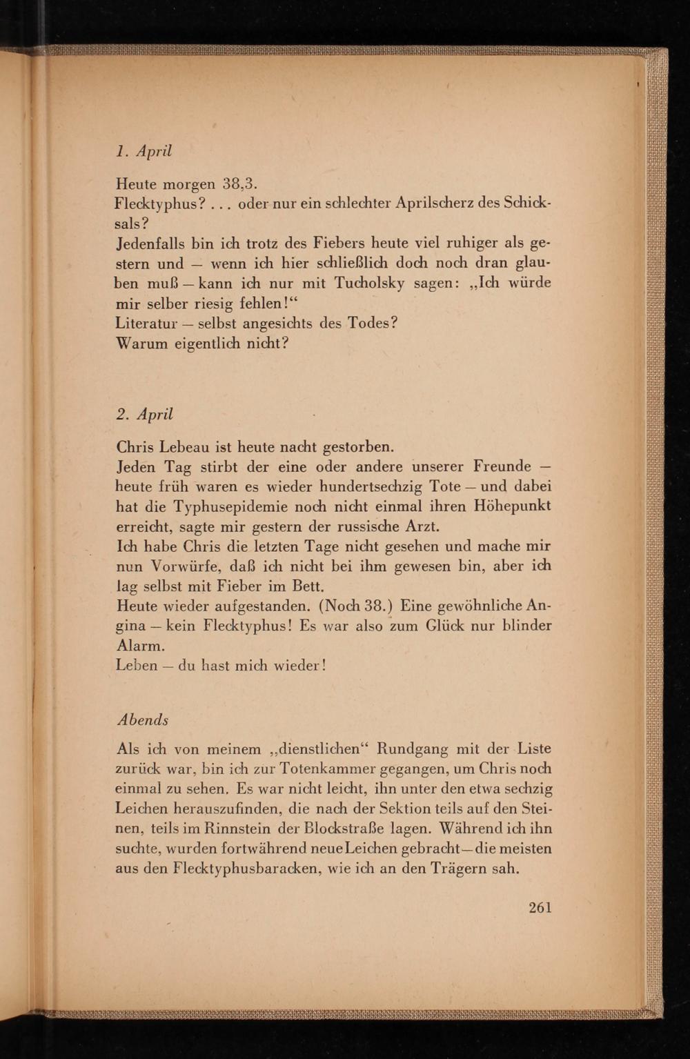 Jeden Tag stirbt der eine oder andere unserer Freunde heute früh waren es wieder hundertsechzig Tote- und dabei hat die Typhusepidemie noch nicht einmal ihren Höhepunkt erreicht, sagte mir gestern der russische Arzt.