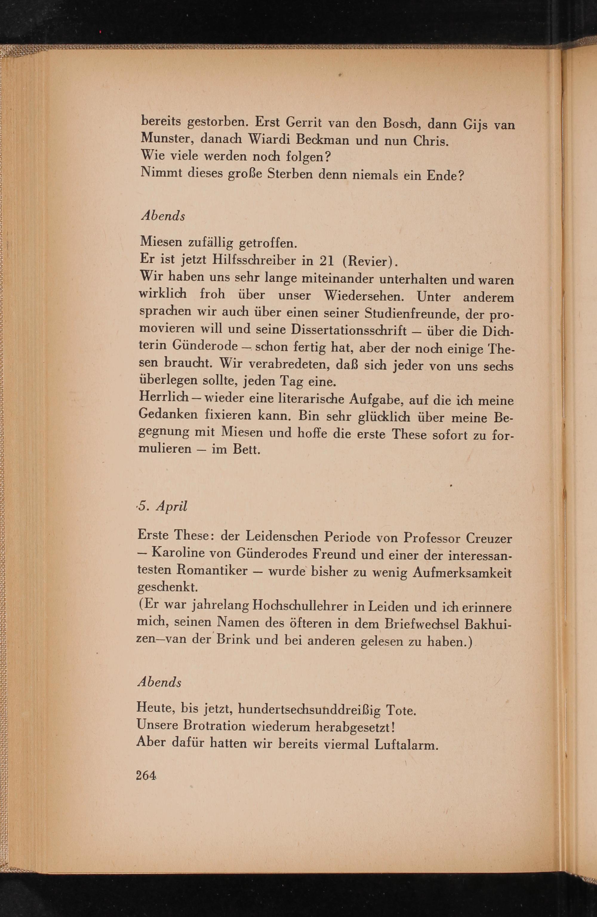 Heute, bis jetzt, hundertsechsunddreißig Tote. Unsere Brotration wiederum herabgesetzt! Aber dafür hatten wir bereits viermal Luftalarm.