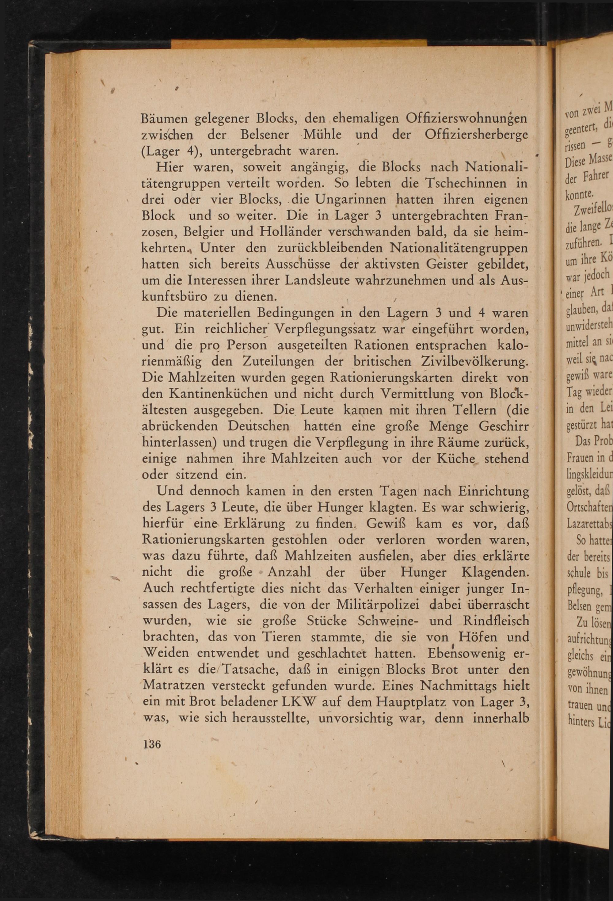 Hier waren, soweit angängig, die Blocks nach Nationalitätengruppen verteilt worden. So lebten die Tschechinnen in drei oder vier Blocks, die Ungarinnen hatten ihren eigenen Block und so weiter. Die in Lager 3 untergebrachten Franzosen, Belgier und Holländer verschwanden bald, da sie heimkehrten. Unter den zurückbleibenden Nationalitätengruppen hatten sich bereits Ausschüsse der aktivsten Geister gebildet, um die Interessen ihrer Landsleute wahrzunehmen und als Auskunftsbüro zu dienen.