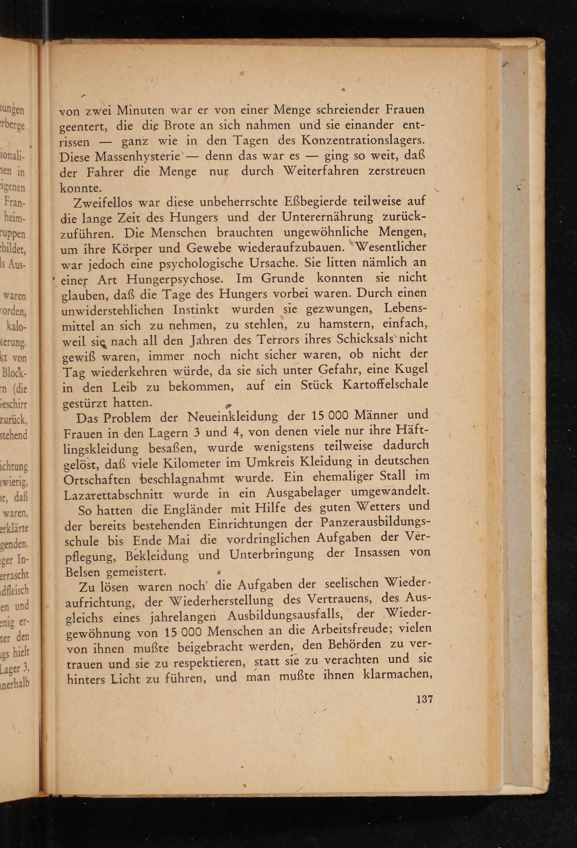 Zweifellos war diese unbeherrschte Eßbegierde teilweise auf die lange Zeit des Hungers und der Unterernährung zurück- zuführen. Die Menschen brauchten ungewöhnliche Mengen, um ihre Körper und Gewebe wiederaufzubauen."Wesentlicher war jedoch eine psychologische Ursache. Sie litten nämlich an