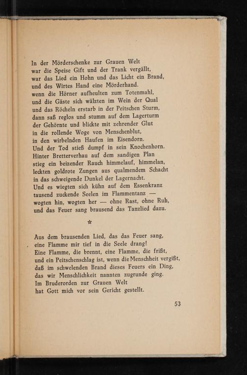 war das Lied ein Hohn und das Licht ein Brand, und des Wirtes Hand eine Mörderhand.