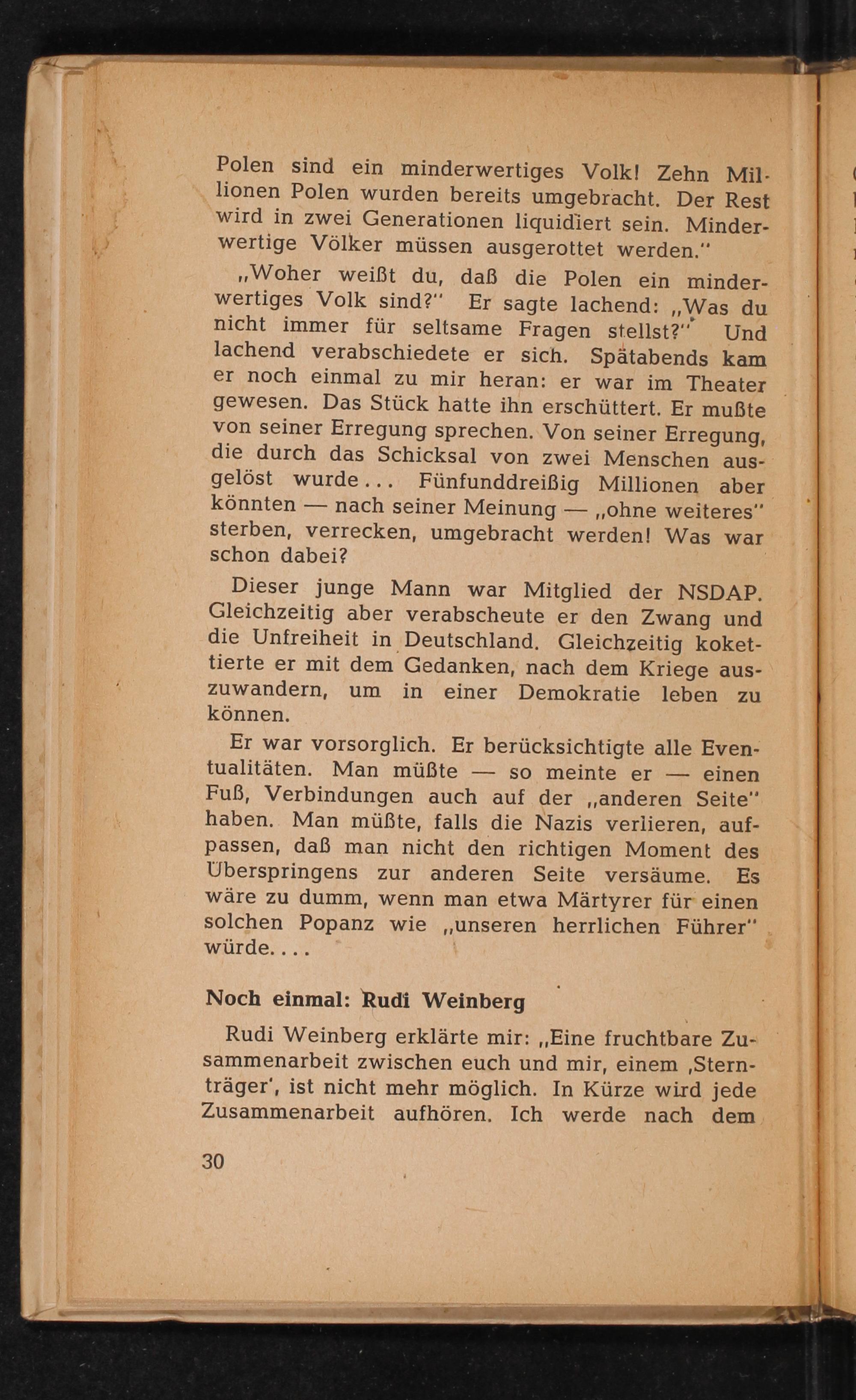 Rudi Weinberg erklärte mir: ,, Eine fruchtbare Zusammenarbeit zwischen euch und mir, einem, Sternträger', ist nicht mehr möglich. In Kürze wird jede Zusammenarbeit aufhören. Ich werde nach dem