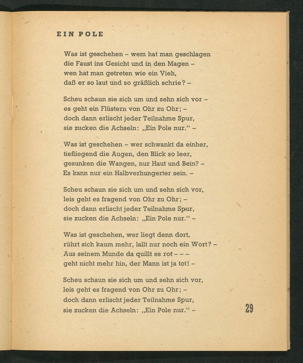|. doch dann erlischt jeder Teilnahme Spur, | sie zucken die Achseln:„Ein Pole nur.‘-