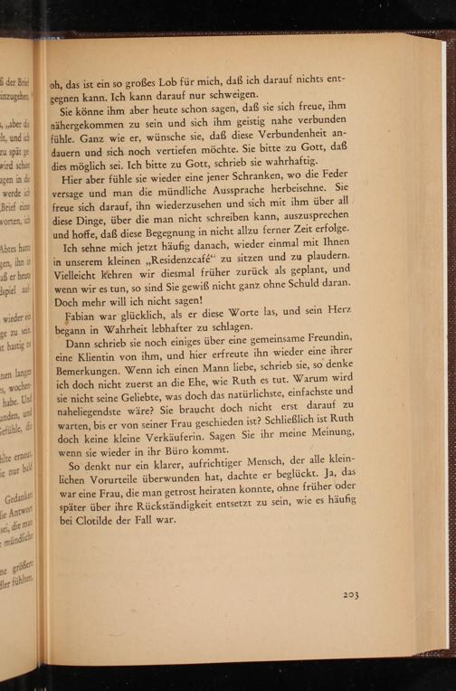 Sie könne ihm aber heute schon sagen, daß sie sich freue, ihm nähergekommen zu sein und sich ihm geistig nahe verbunden fühle. Ganz wie er, wünsche sie, daß diese Verbundenheit andauern und sich noch vertiefen möchte. Sie bitte zu Gott, daß dies möglich sei. Ich bitte zu Gott, schrieb sie wahrhaftig.