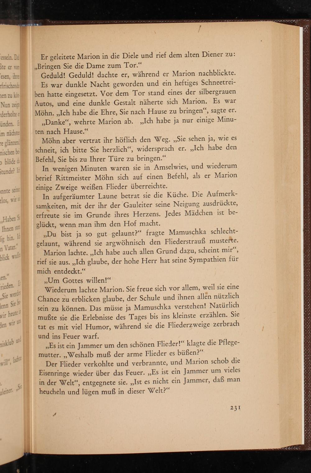 In wenigen Minuten waren sie in Amselwies, und wiederum berief Rittmeister Möhn sich auf einen Befehl, als er Marion einige Zweige weißen Flieder überreichte.