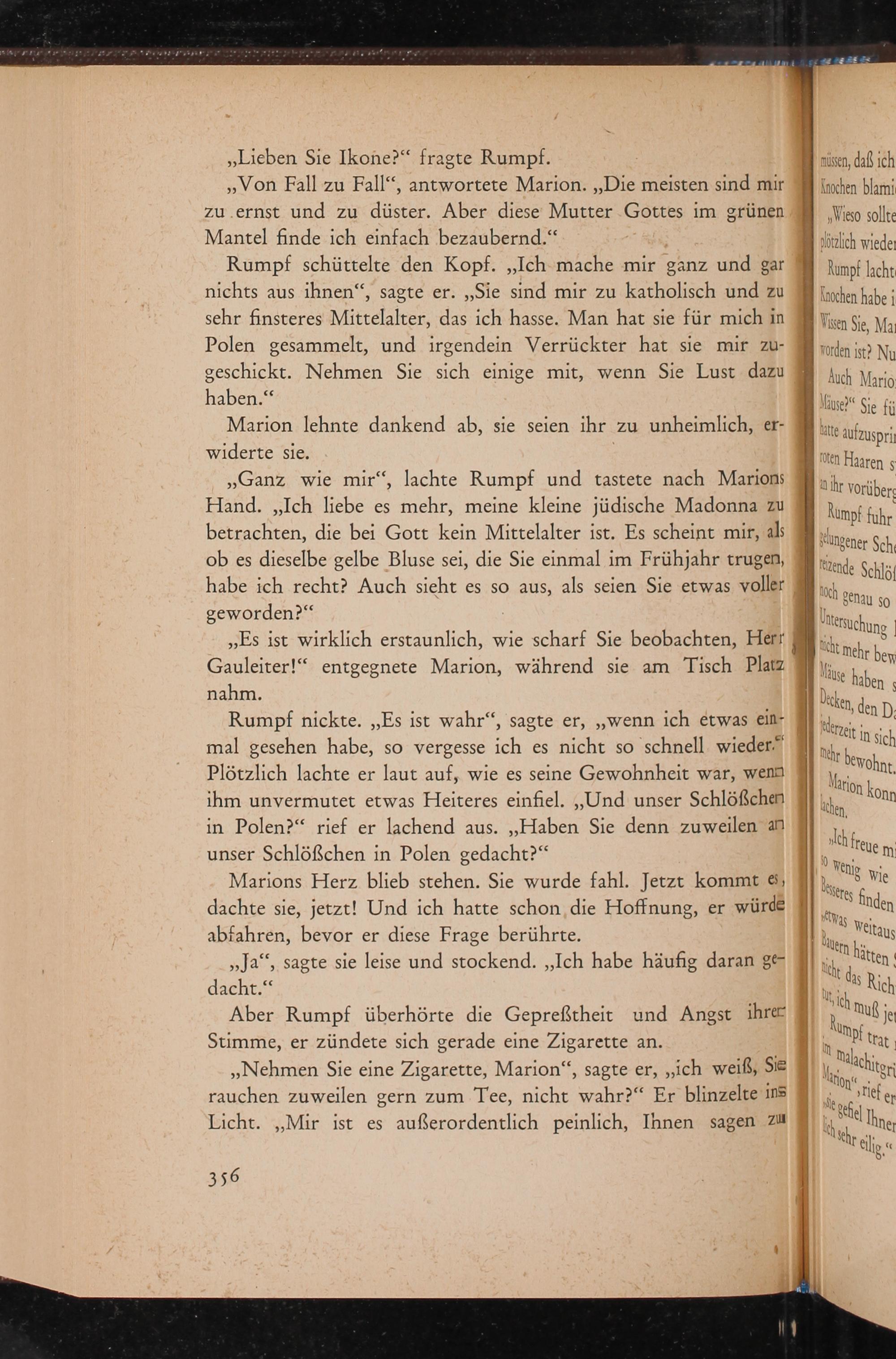 Rumpf schüttelte den Kopf. ,, Ich mache mir ganz und gar nichts aus ihnen", sagte er. ,, Sie sind mir zu katholisch und zu sehr finsteres Mittelalter, das ich hasse. Man hat sie für mich in Polen gesammelt, und irgendein Verrückter hat sie mir zugeschickt. Nehmen Sie sich einige mit, wenn Sie Lust dazu haben."