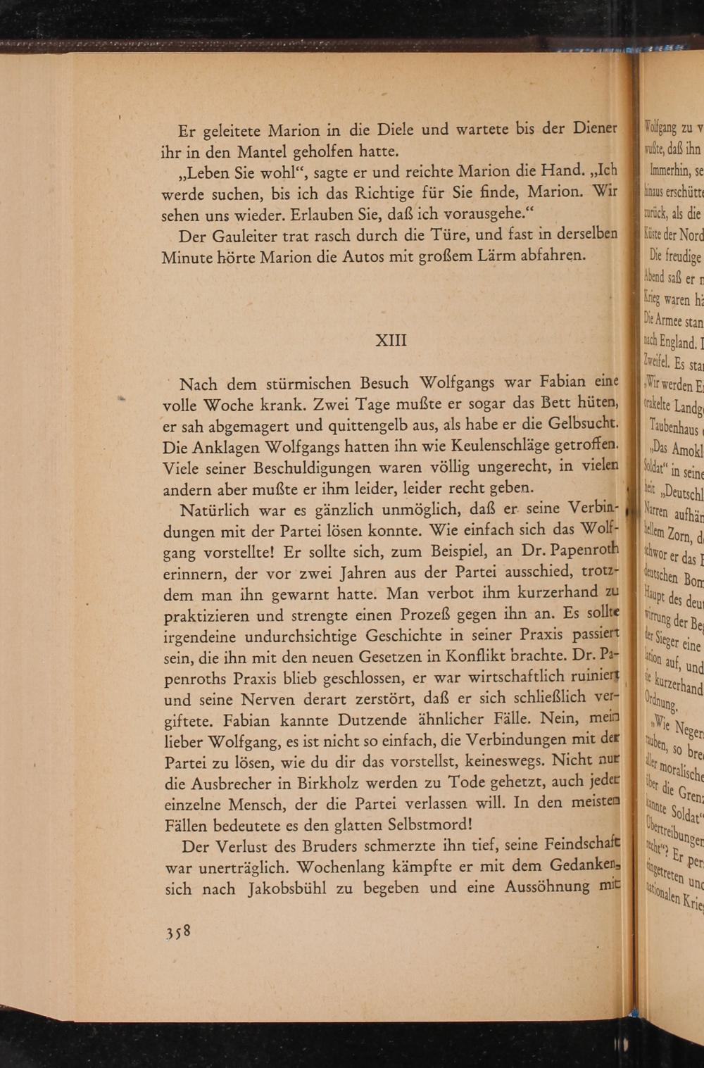 Der Gauleiter trat rasch durch die Türe, und fast in derselben Minute hörte Marion die Autos mit großem Lärm abfahren.