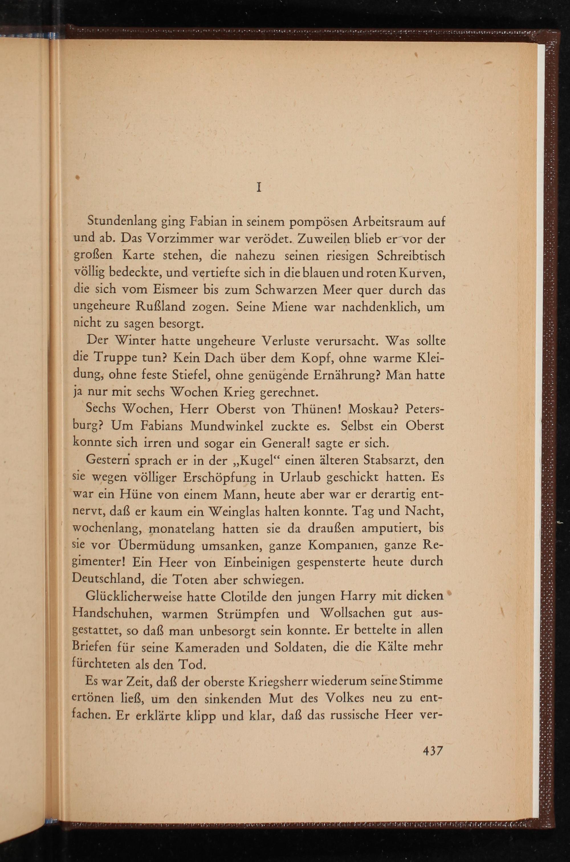 Glücklicherweise hatte Clotilde den jungen Harry mit dicken Handschuhen, warmen Strümpfen und Wollsachen gut ausgestattet, so daß man unbesorgt sein konnte. Er bettelte in allen Briefen für seine Kameraden und Soldaten, die die Kälte mehr fürchteten als den Tod.