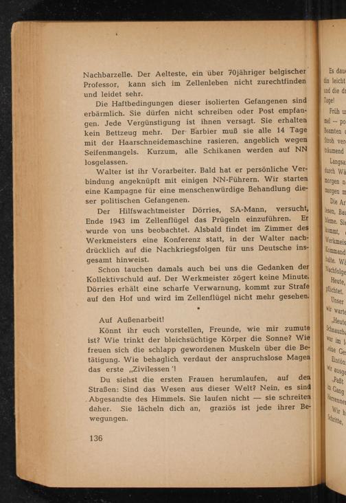 Walter ist ihr Vorarbeiter. Bald hat er persönliche Verbindung angeknüpft mit einigen NN- Führern. Wir starten eine Kampagne für eine menschenwürdige Behandlung dieser politischen Gefangenen.
