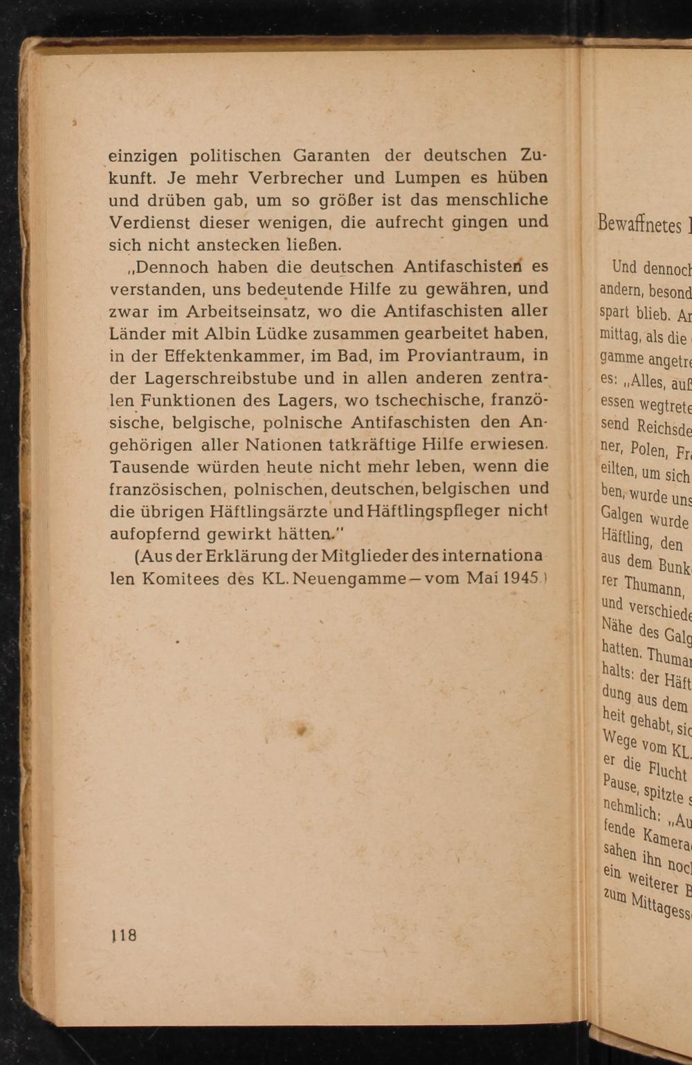 „Dennoch haben die deutschen Antifaschisten es verstanden, uns bedeutende Hilfe zu gewähren, und zwar im Arbeitseinsatz, wo die Antifaschisten aller Länder mit Albin Lüdke zusammen gearbeitet haben, in der Effektenkammer, im Bad, im Proviantraum, in
