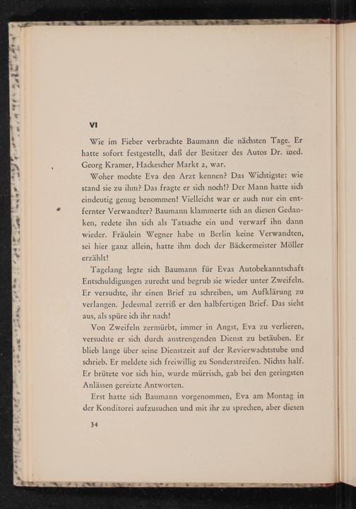 Wie im Fieber verbrachte Baumann die nächsten Tage. Er hatte sofort festgestellt, daß der Besitzer des Autos Dr. ined. Georg Kramer, Hackescher Markt 2, war.