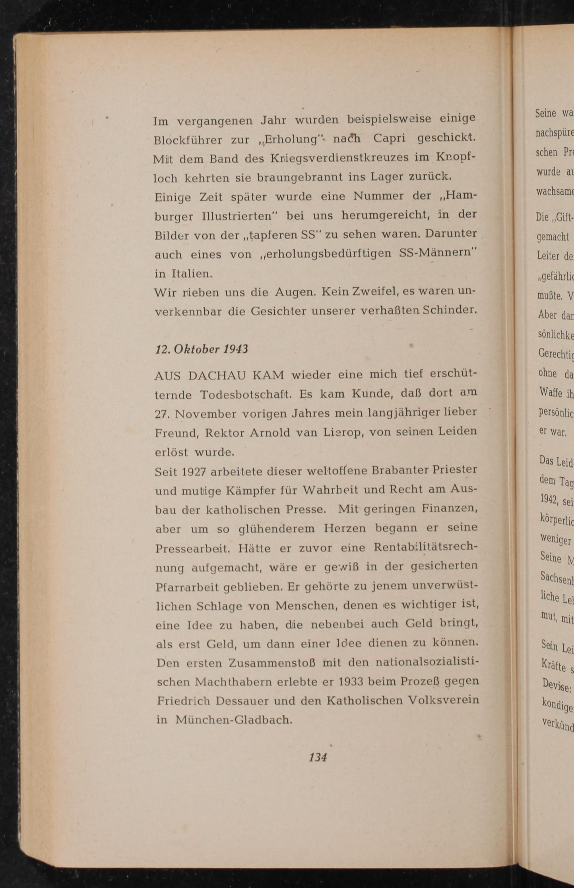 AUS DACHAU KAM wieder eine mich tief erschütternde Todesbotschaft. Es kam Kunde, daß dort am 27. November vorigen Jahres mein langjähriger lieber Freund, Rektor Arnold van Lierop, von seinen Leiden erlöst wurde.