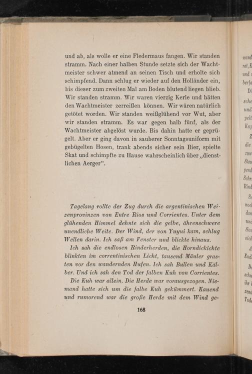 Ich sah die endlosen Rinderherden, die Horndickichte blinkten im correntinischen Licht, tausend Mäuler grasten vor den wandernden Hufen. Ich sah Bullen und Kälber. Und ich sah den Tod der falben Kuh von Corrientes .
