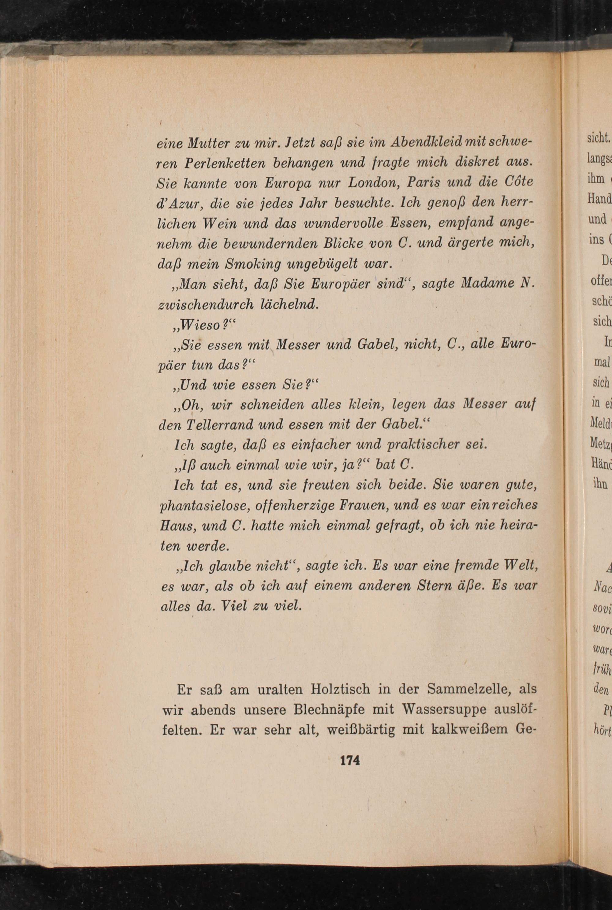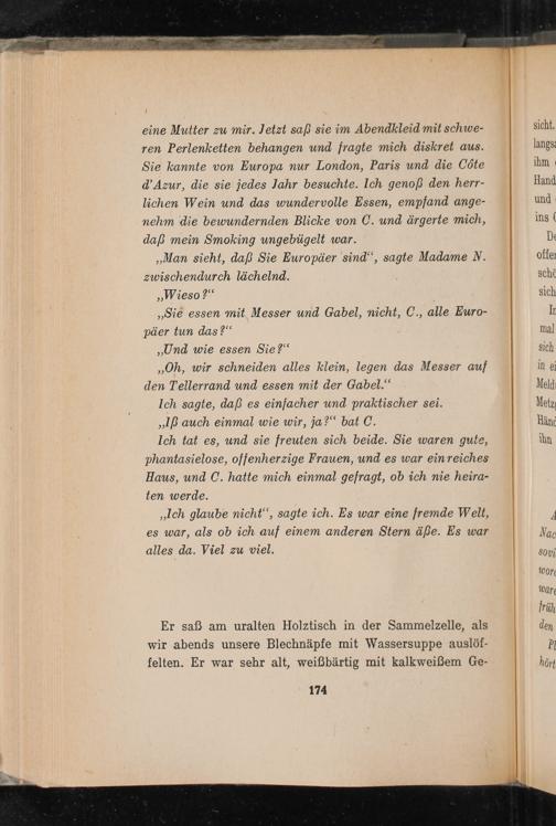 ,, Ich glaube nicht", sagte ich. Es war eine fremde Welt, es war, als ob ich auf einem anderen Stern äße. Es war alles da. Viel zu viel.