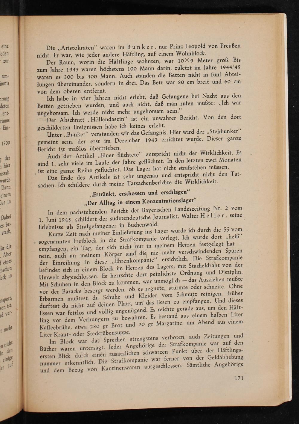 In dem nachstehenden Bericht der Bayerischen Landeszeitung Nr. 2 vom 1. Juni 1945, schildert der sudetendeutsche Journalist, Walter Heller, seine Erlebnisse als Strafgefangener in Buchenwald .