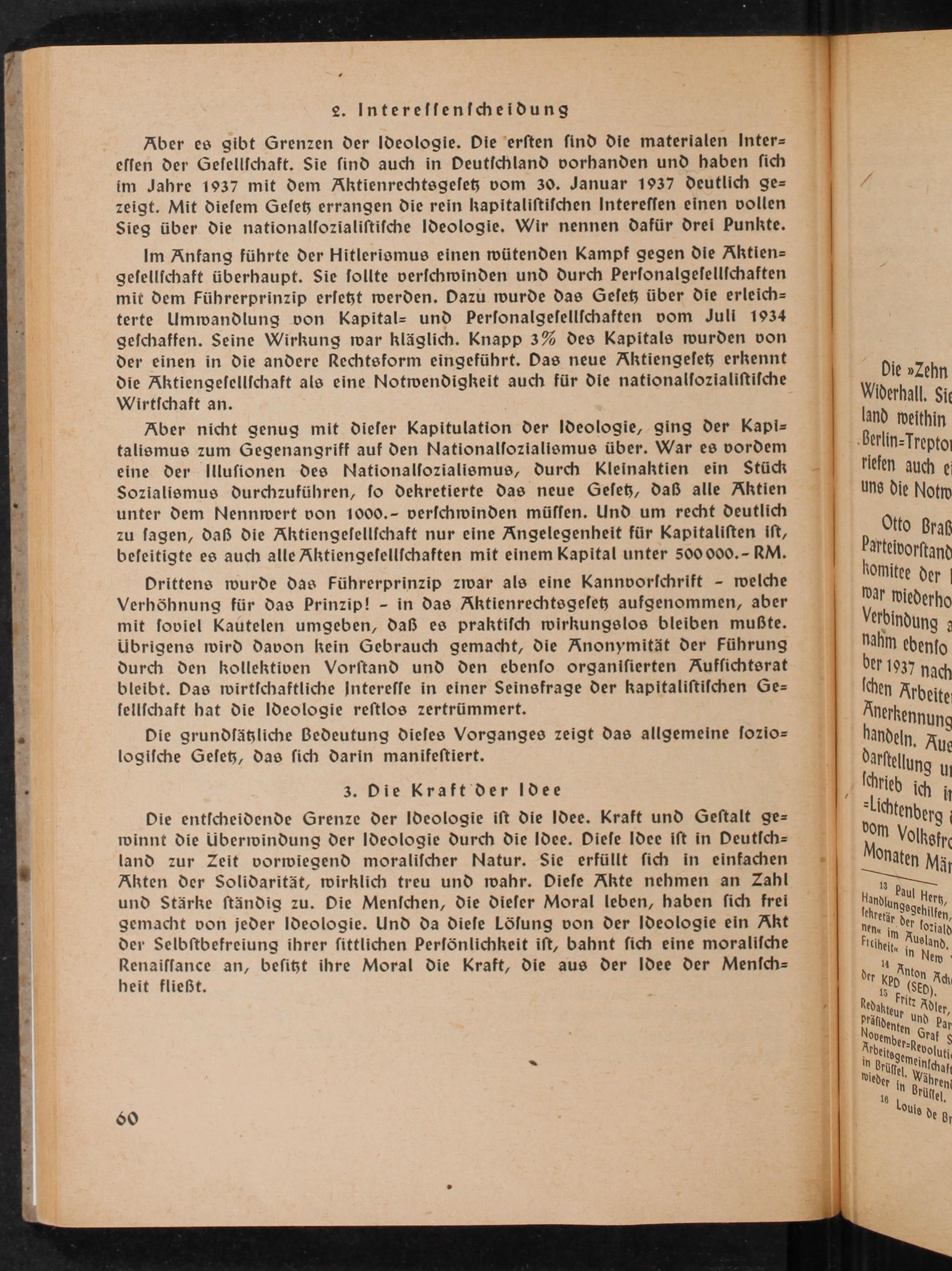 Aber es gibt Grenzen der Ideologie. Die‘erſten ſind die materialen Inter= eſſen der Geſellſchaft. Sie ſind auch in Deutſchland vorhanden und haben ſich im Jahre 1937 mit dem Aktienrechtsgeſet; vom 30. Januar 1937 deutlich ge= zeigt. Mit dieſem Geſetz errangen die rein kapitaliſtiſchen Intereſſen einen vollen Sieg über die nationalſozialiſtiſche Ideologie. Wir nennen dafür drei Punkte.