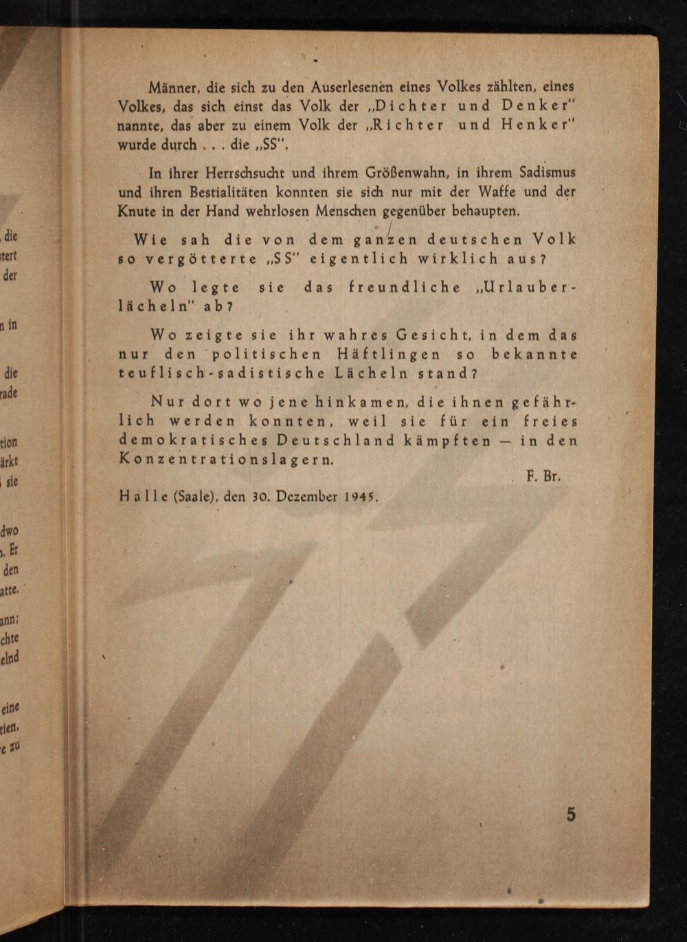 Männer, die sich zu den Auserlesenen eines Volkes zählten, eines Volkes, das sich einst das Volk der ,, Dichter und Denker" nannte, das aber zu einem Volk der ,, Richter und Henker" wurde durch... die ,, SS".