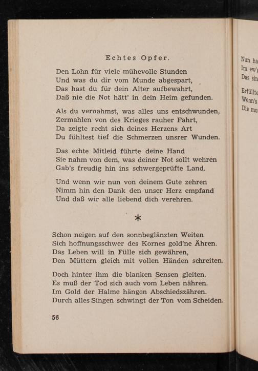 Sie nahm von dem, was deiner Not sollt wehren Gab's freudig hin ins schwergeprüfte Land.