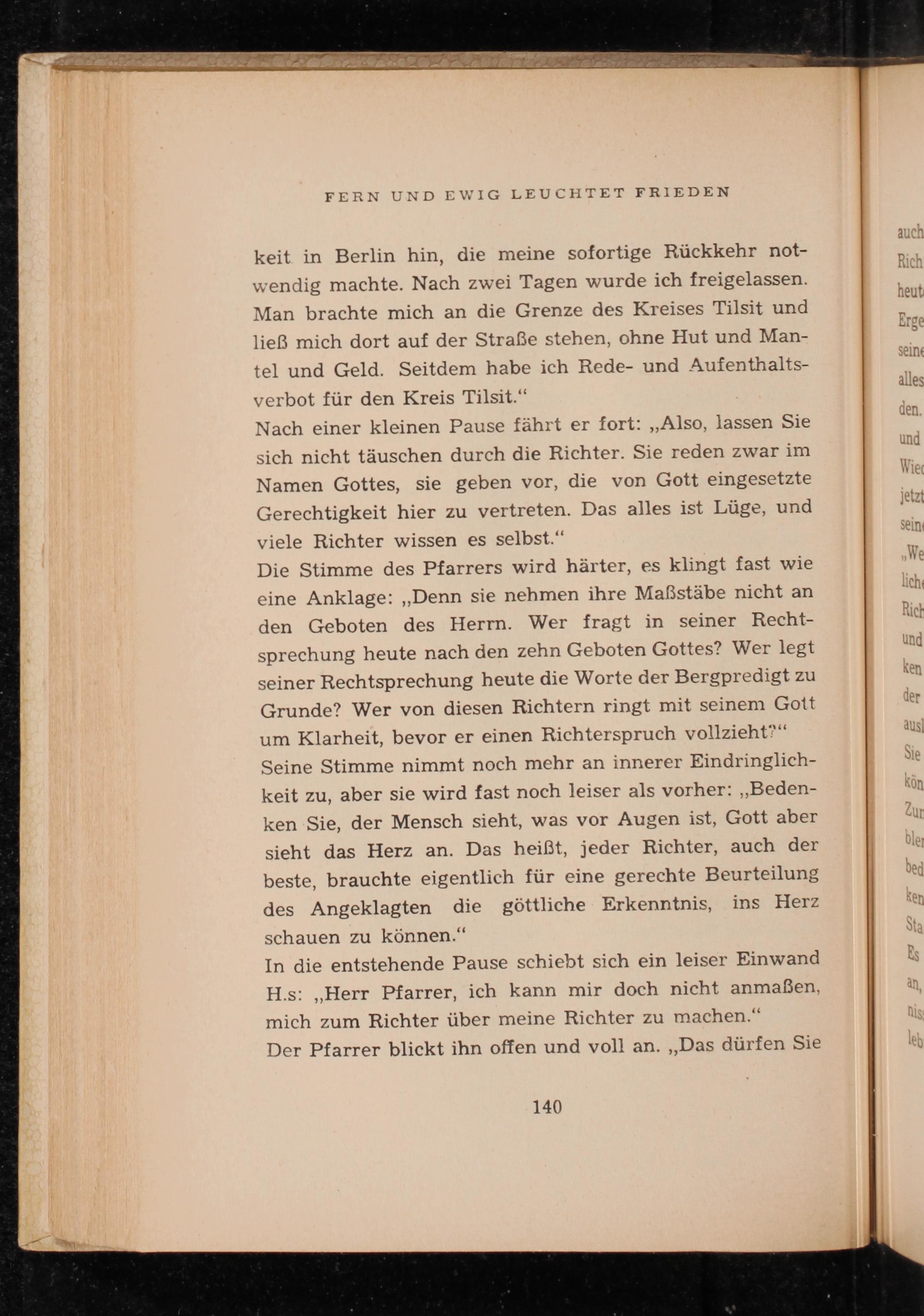 In die entstehende Pause schiebt sich ein leiser Einwand H.s:„Herr Pfarrer, ich kann mir doch nicht anmaßen, mich zum Richter über meine Richter zu machen.“