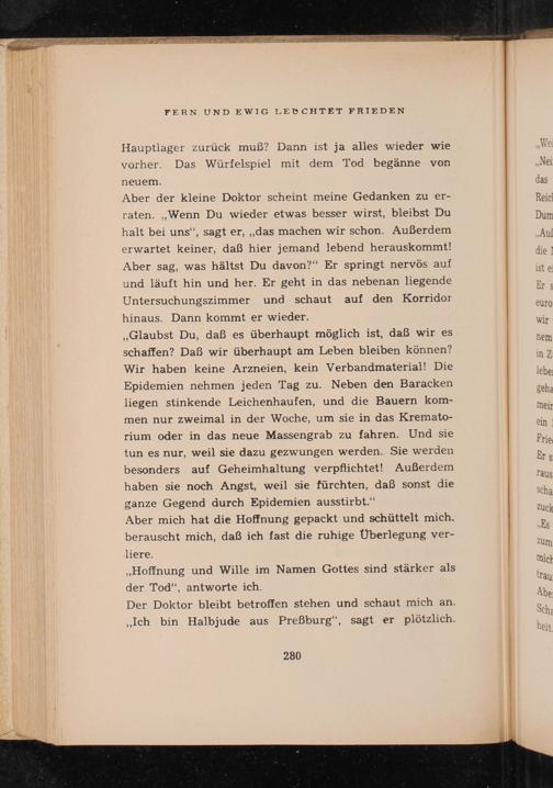 Der Doktor bleibt betroffen stehen und schaut mich an. ,, Ich bin Halbjude aus Preßburg ", sagt er plötzlich.