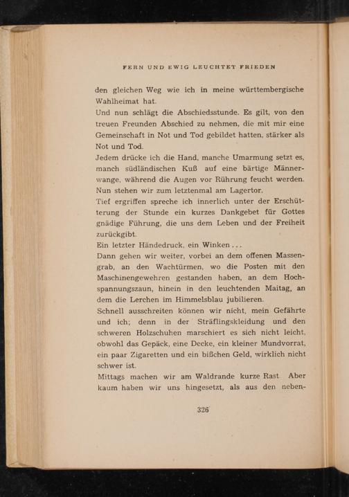 Tief ergriffen spreche ich innerlich unter der Erschüt- terung der Stunde ein kurzes Dankgebet für Gottes gnädige Führung, die uns dem Leben und der Freiheit zurückgibt.